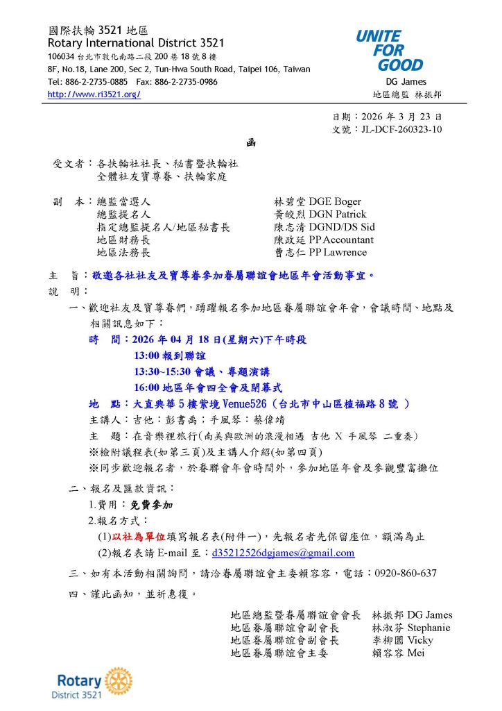函知 本地區2026年地區年會之提案內容暨通信投票相關事項